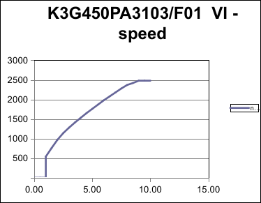 以K3G450PA3103/F01举例,展示不同转速下的输出电压值。IO3端子默认为0-10V输出,调速并测量该信号。
