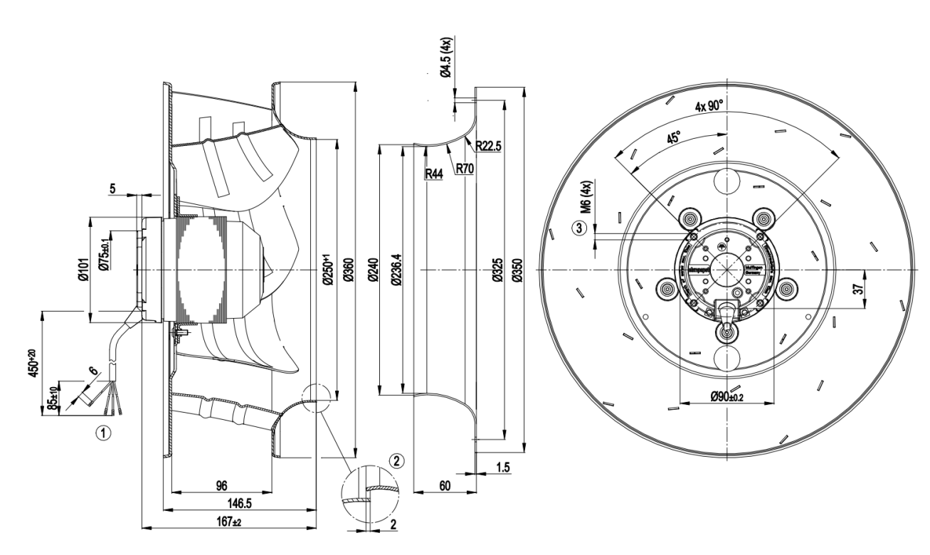 风力发电风机 280mm 1865m3/h W2E250-HL06-01