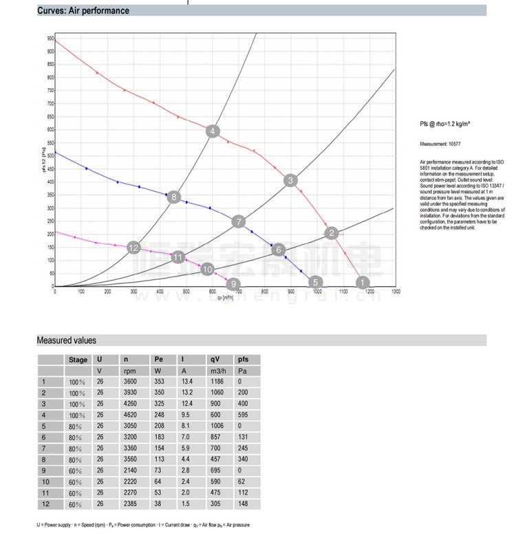 德国ebmpapst K3G097-AK28-75/G01 离心风机结构风量图