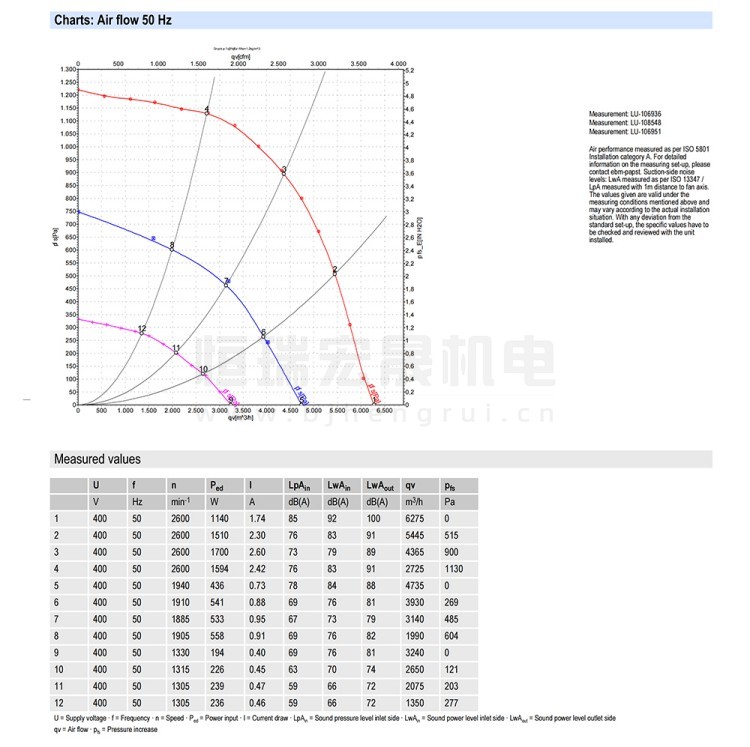 德国ebmpapst R3G355-AY40-01离心风机结构风量图