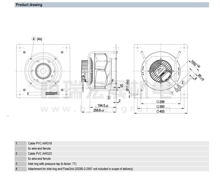 德国ebmpapst K3G280-PR04-I2风机结构风量图