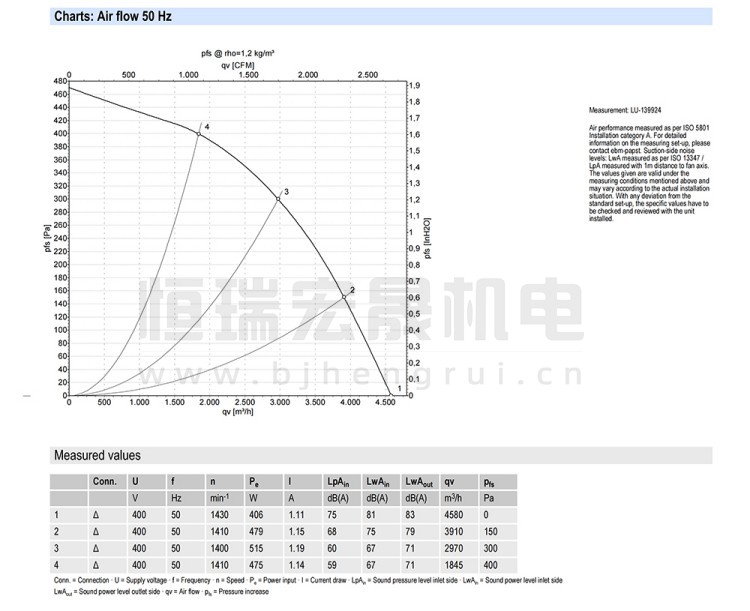 德国ebmpapst R4D400-RO22-01 风机结构风量图
