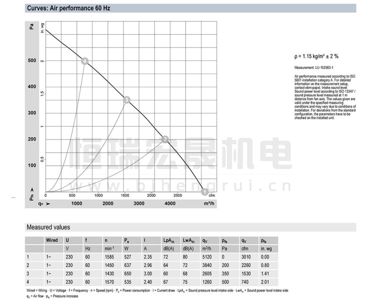 德国ebmpapst R4E400-RO09-05 风机结构风量图