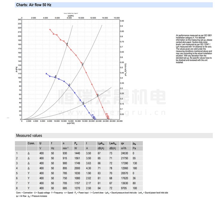 德国ebmpapst A6D800-AJ01-01轴流风机结构风量图:
