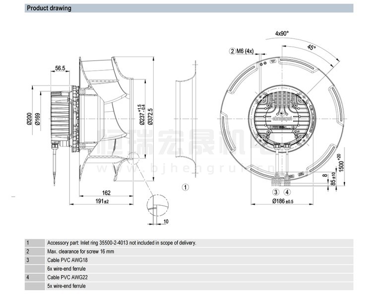 德国ebmpapst R3G355-RJ91-02/F01 离心风机结构风量图