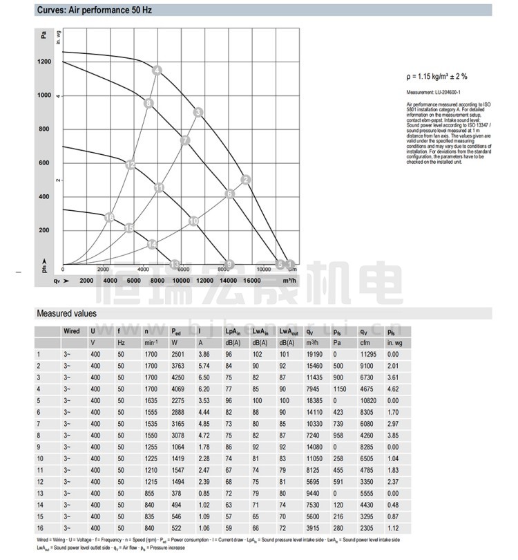 德国ebmpapst K3G560-PB31-61风机结构风量图