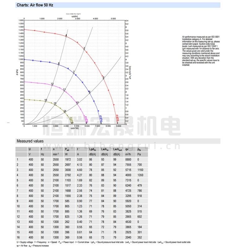 德国ebmpapst R3G400-AQ23-09 风机结构风量图