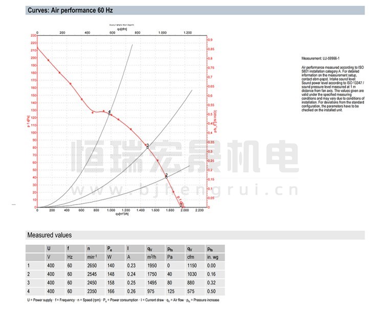 德国ebmpapst W2D250-CI02-01 风机结构风量图