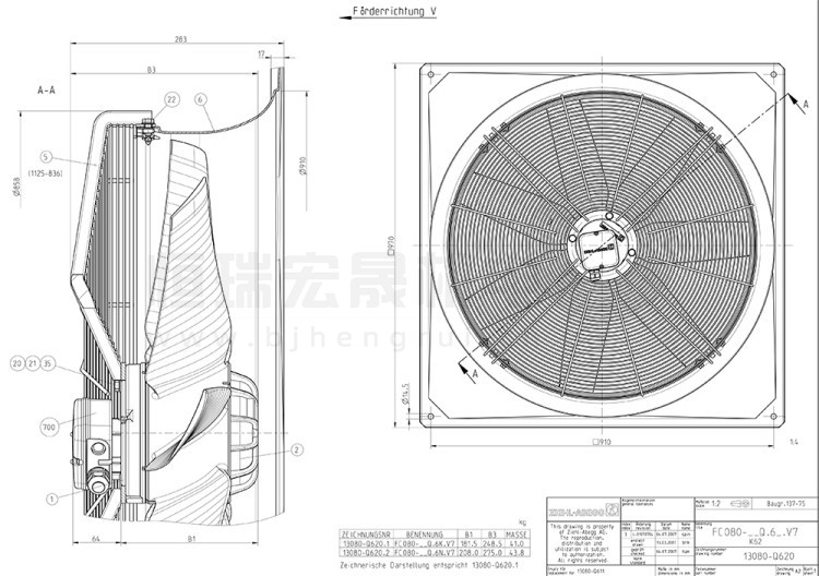 德国ziehl-abegg FC080-6EQ.6N.V7 162190 风机结构风量图