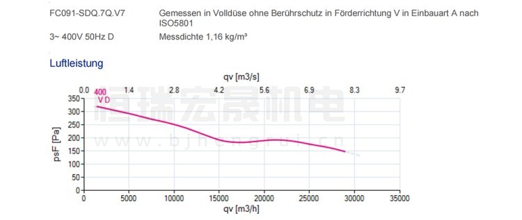 德国ziehl-abegg FC091-SDQ.7Q.V7 124407 风机结构风量图