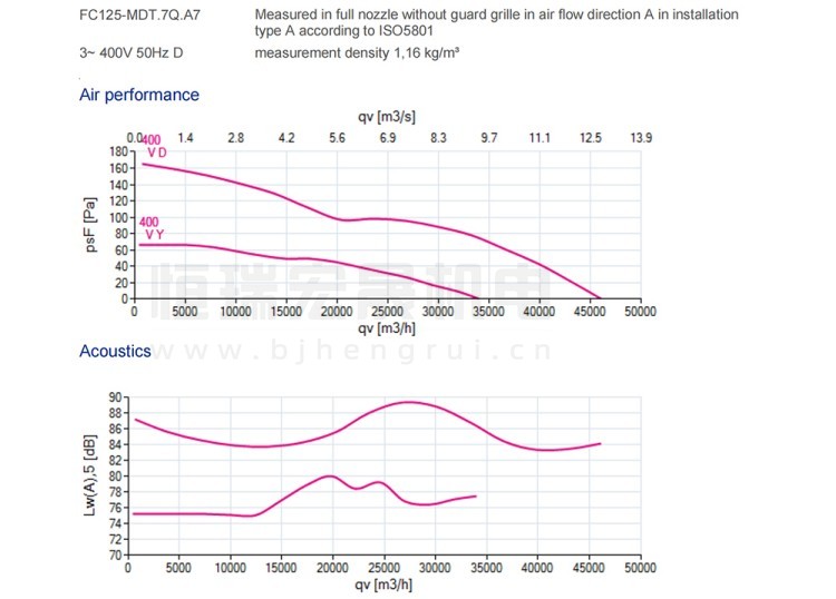 德国ziehl-abegg FC125-MDT.7Q.A7 140500 风机结构风量图