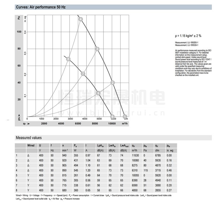 德国ebmpapst W6D630-NT01-01 轴流风机结构风量图