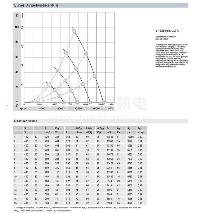德国ebmpapst W3G800-KE57-51轴流风机结构风量图