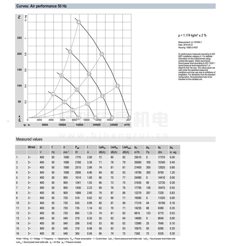 德国ebmpapst W3G800-KU21-03 轴流风机结构风量图