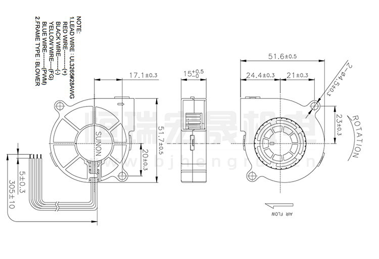 SUNON建准 MF50151V2-1C01A-S99 直流风机结构风量图
