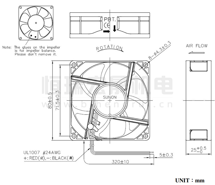 SUNON建准 GF80252B5-000C-AC9 直流风机实拍图