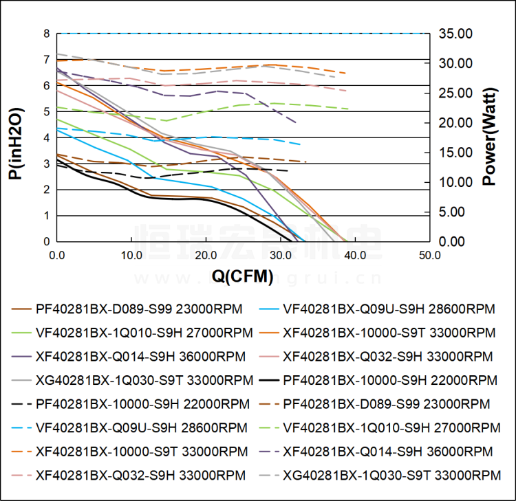 SUNON建准 XF40281BX-Q032-S9H 直流风机风量图