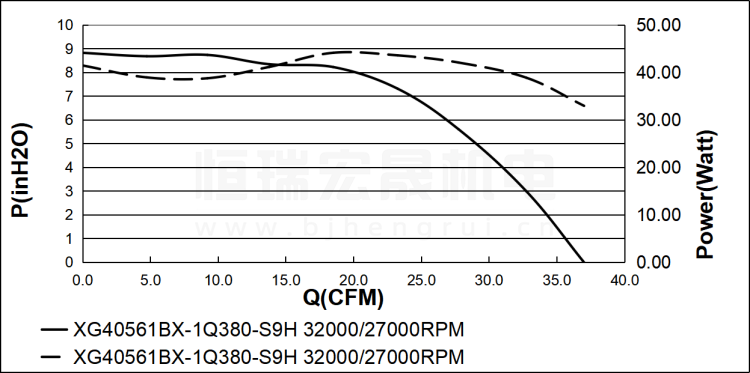 SUNON建准 XG40561BX-1Q380-S9H 直流风机风量图