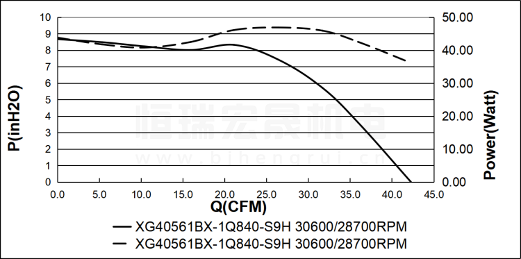 SUNON建准 XG40561BX-1Q840-S9H 直流风机风量图