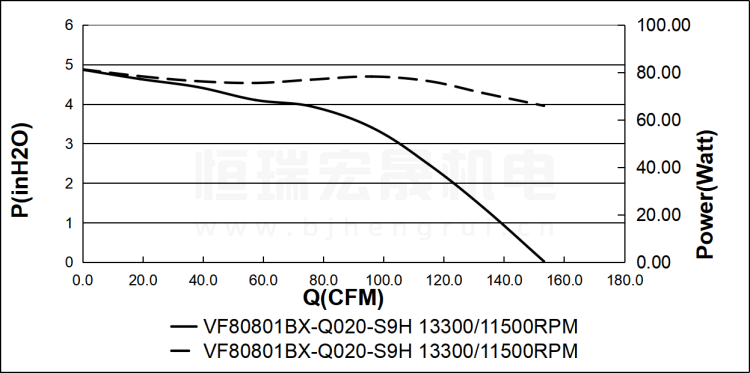 SUNON建准 VF80801BX-Q020-S9H 直流风机风量图