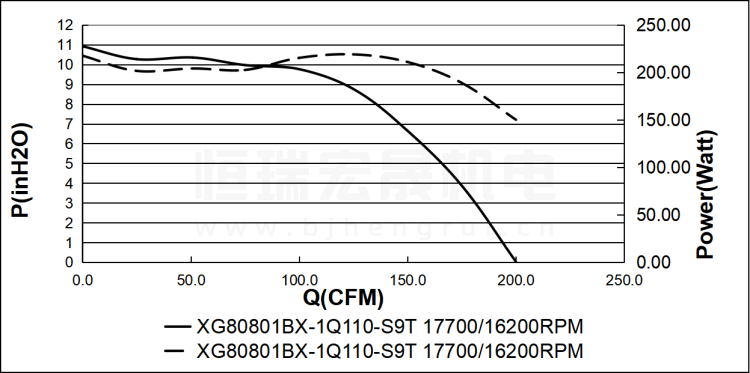 SUNON建准 XG80801BX-1Q110-S9T 直流风机风量图