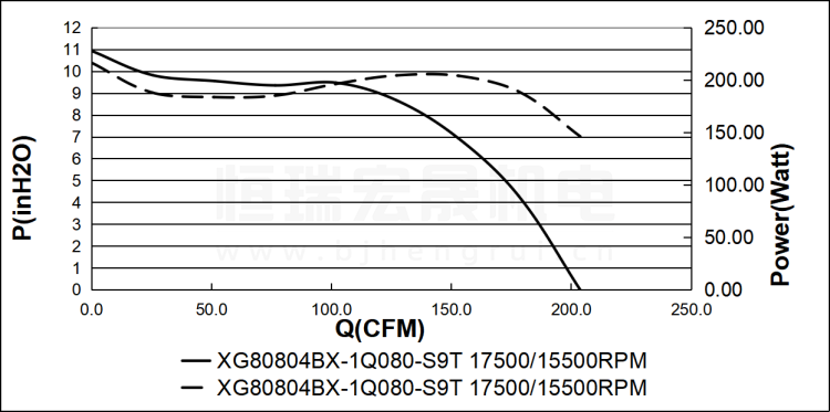 SUNON建准 XG80804BX-1Q080-S9T 直流风机风量图