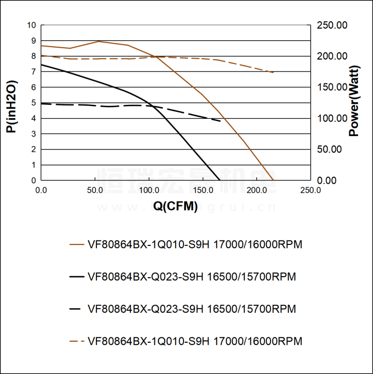 SUNON建准 VF80864BX-1Q010-S9H 直流风机风量图