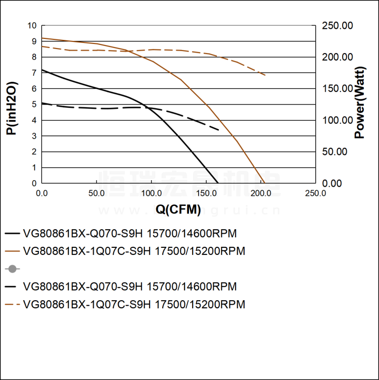 SUNON建准 VG80861BX-1Q07C-S9H 直流风机风量图