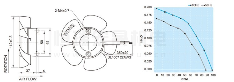 UF12AE23BWH FULLTECH 福佑风机结构风量图:
