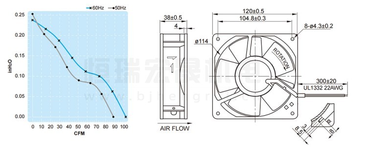UF12AM23BTHF FULLTECH 福佑风机结构风量图: