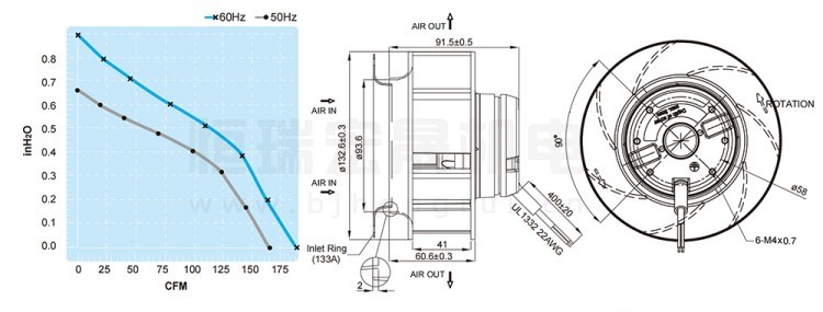 UF133(91)APA23H1S2A FULLTECH 福佑风机结构风量图: