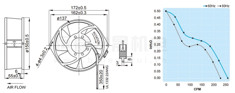 UF-15KMR23BTHF FULLTECH 福佑风机结构风量图: