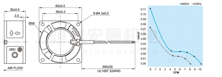 UF-60D23BWH FULLTECH 福佑风机结构风量图: