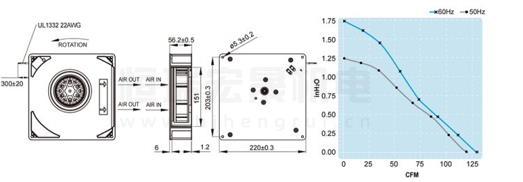 UF-160DPB23H1S2A FULLTECH 福佑风机结构风量图: