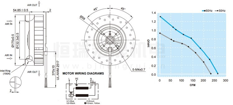 UF-175AMA23H1C2A FULLTECH 福佑风机结构风量图: