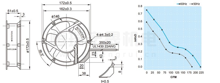 UF-17PC23BTH FULLTECH 福佑风机结构风量图: