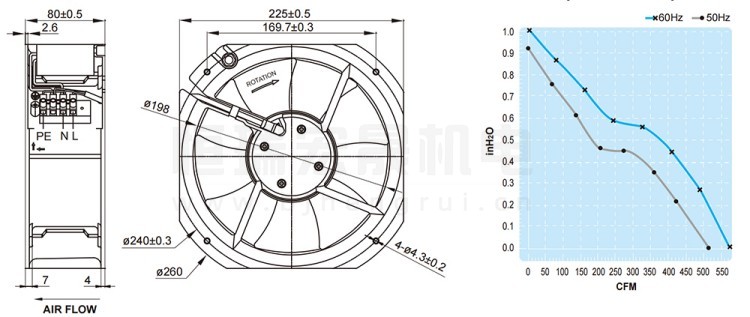 UF-200BMA23H2C2A FULLTECH 福佑风机结构风量图: