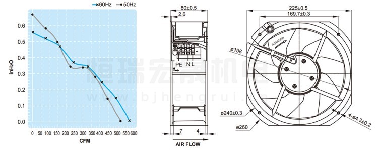 UF-200BMB23H1C2A FULLTECH 福佑风机结构风量图: