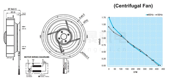 UF-220APA23H2C2F FULLTECH 福佑风机结构风量图: