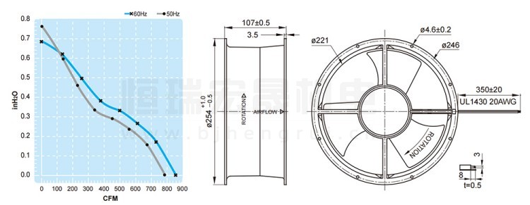 UF-25HC23BTH FULLTECH 福佑风机结构风量图: