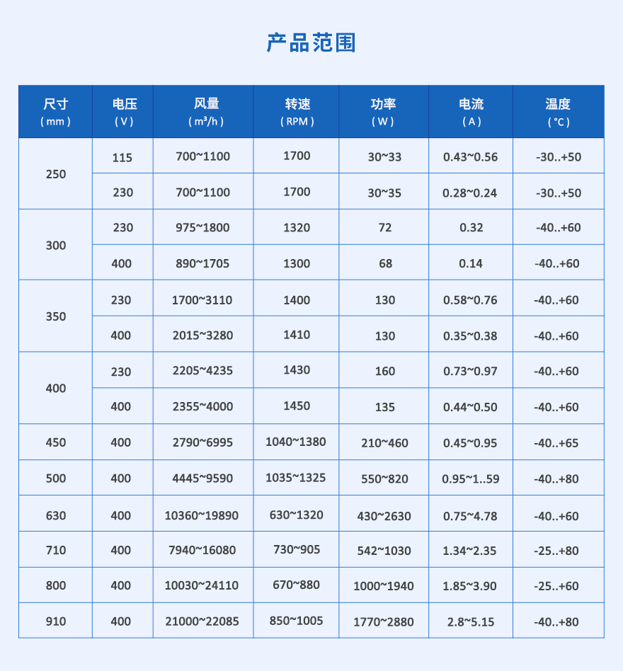 风力发电风机 280mm 1865m3/h W2E250-HL06-01