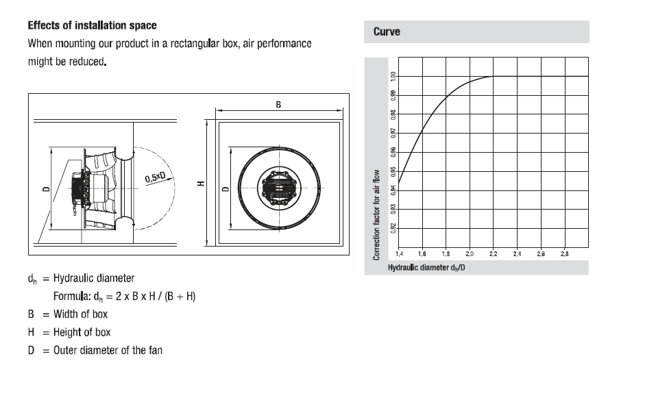 进风侧要求:进风口距离障碍物的距离不低于0.5倍叶轮直径