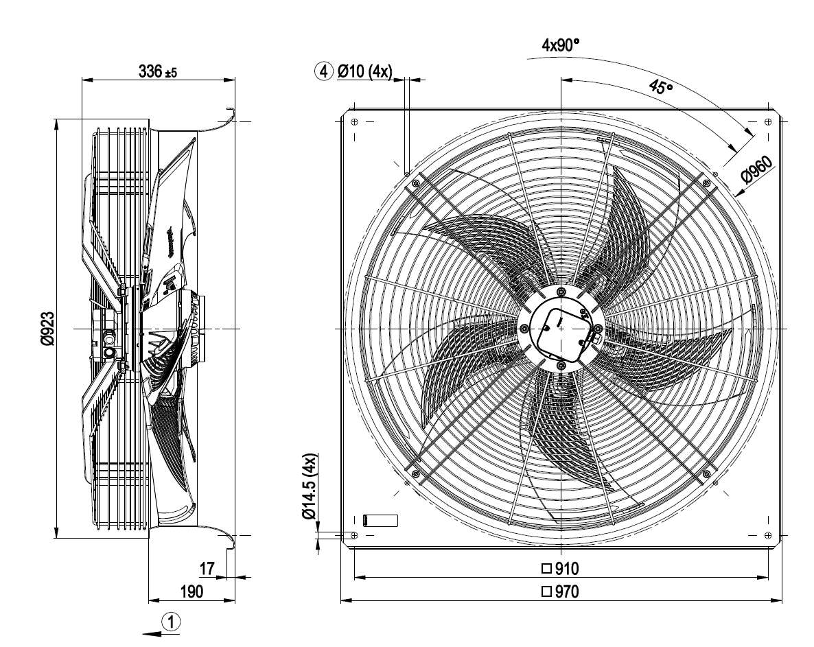 我们来看离心风机:(离心风机轴水平安装时,要注意引出线的朝向)