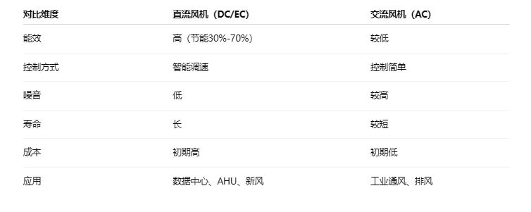 二、直流风机和交流风机的核心区别