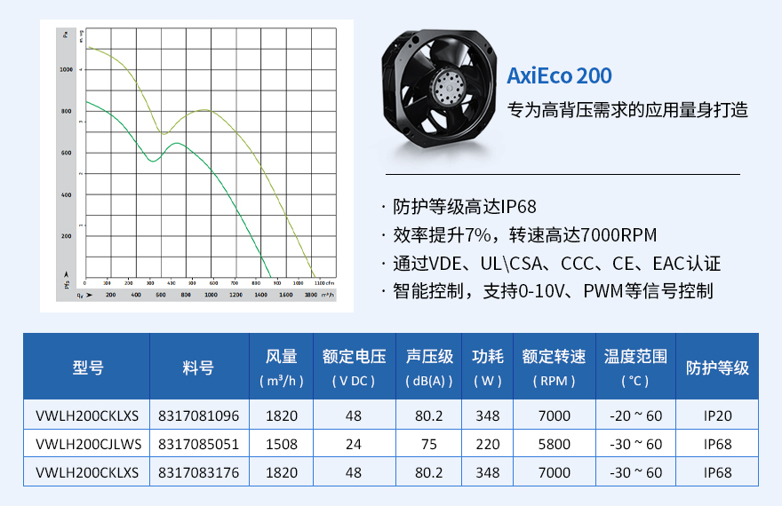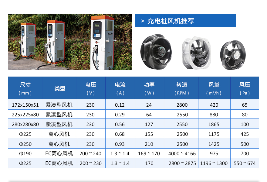 新能源充电桩风机 225*80mm 880m³/h W2E200-HK38-01
