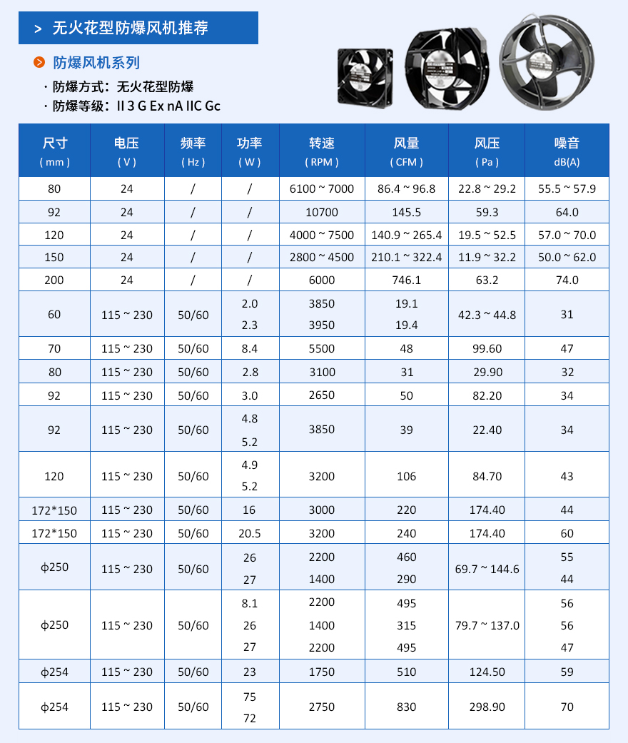 风力发电风机 280mm 1865m3/h W2E250-HL06-01