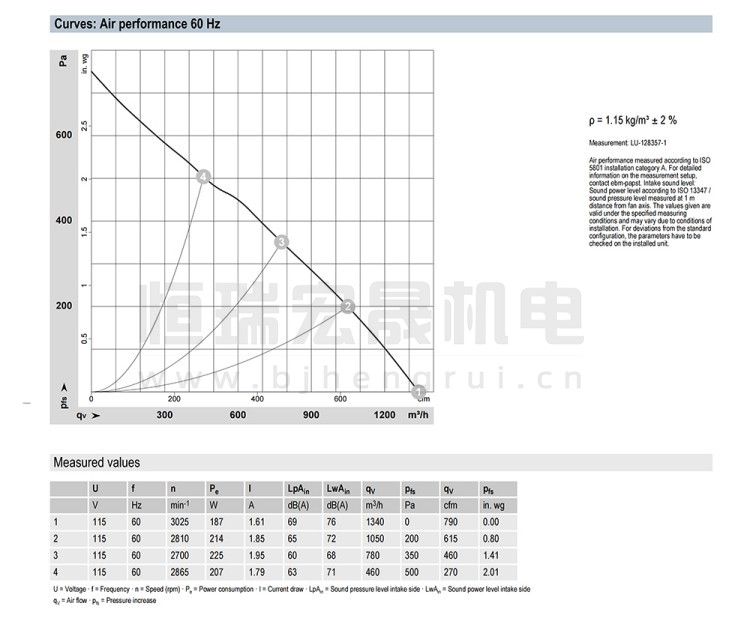 德国ebmpapst R2E225-RA40-21风机结构风量图