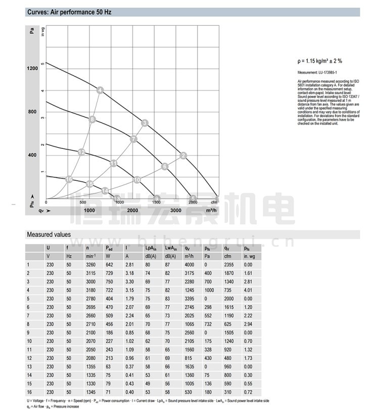 德国ebmpapst K3G280-PR04-I2风机结构风量图