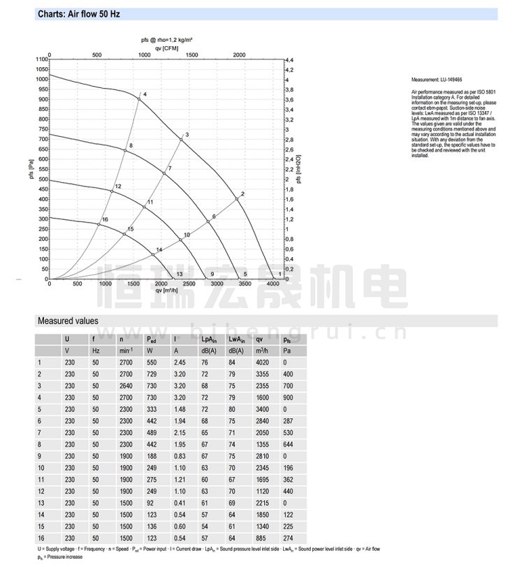 德国ebmpapst R3G310-RS01-I1 风机结构风量图