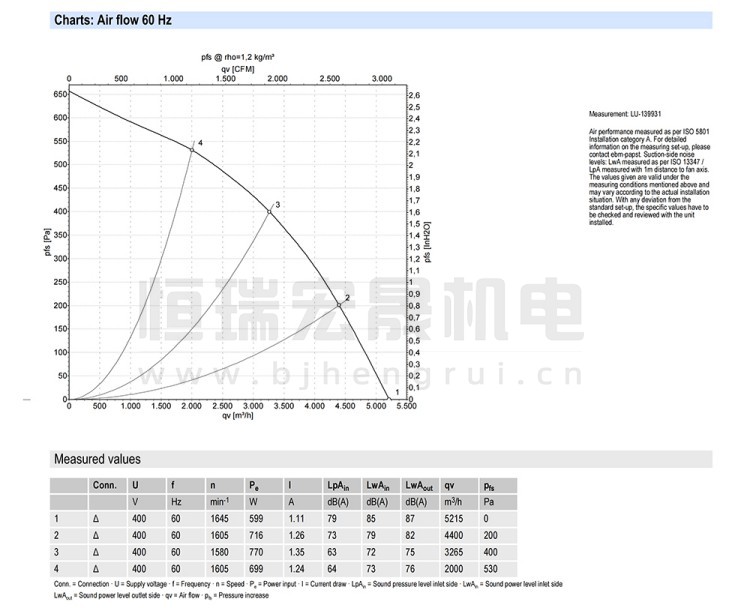 德国ebmpapst R4D400-RO22-01 风机结构风量图